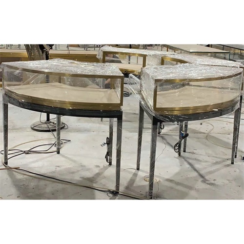 不銹鋼展柜設(shè)計(jì)定做廠家為您展示的是2020新款弧形黃金珠寶展柜_不銹鋼黃金飾品玻璃展示柜