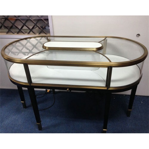 不銹鋼展柜設(shè)計(jì)定做廠家為您展示的是2020新款鈦金不銹鋼玻璃珠寶展柜_橢圓珠寶飾品展柜