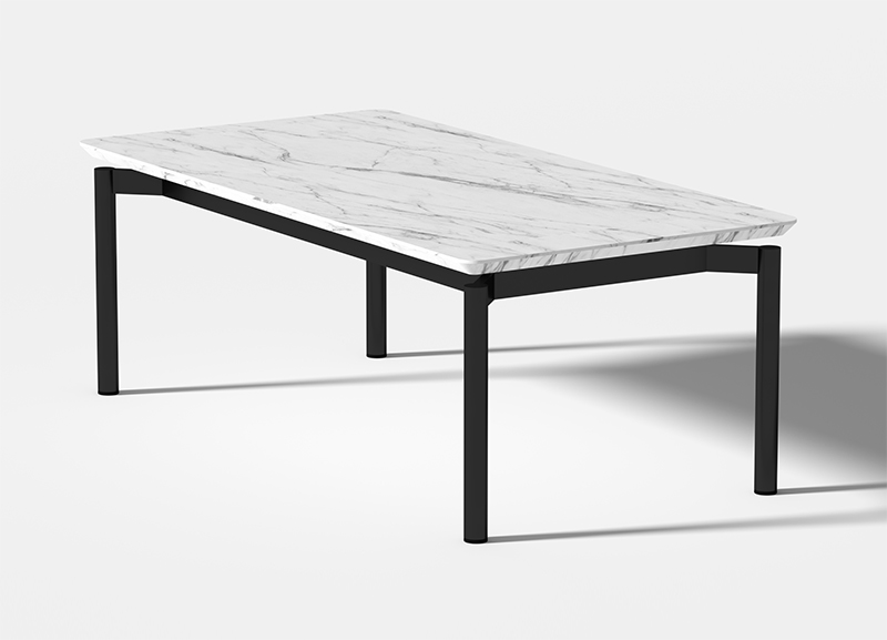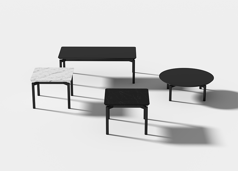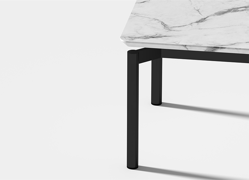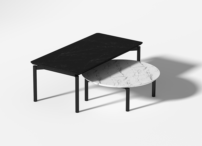 米洛茶幾作為米洛沙發(fā)的系列產(chǎn)品,沿用了其獨(dú)特的腳架形式;在極簡(jiǎn)、百搭的理念下,搭配黑白石紋的巖板臺(tái)面,形成了極具有漂浮感和建筑感的幾何外形。