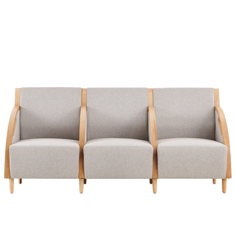 【材質(zhì)說(shuō)明】: 扶手外框采用A級(jí)白蠟?zāi)局谱鳎痉鍪纸?jīng)開(kāi)料、造型、打磨、噴漆制作;座背軟包可選配布紋及皮革軟包。