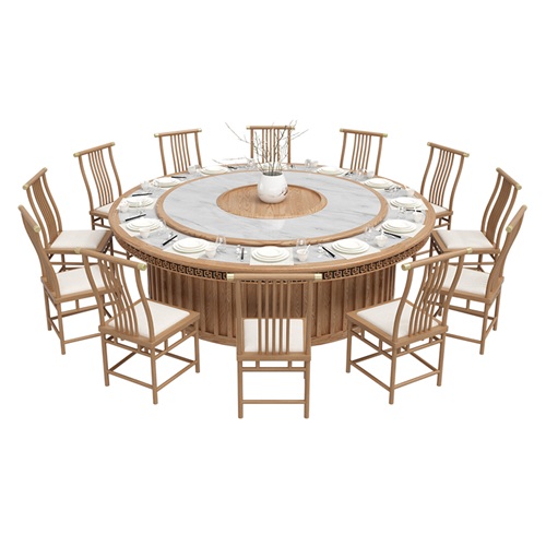 酒店包廂新中式實(shí)木2米電動(dòng)餐桌圖