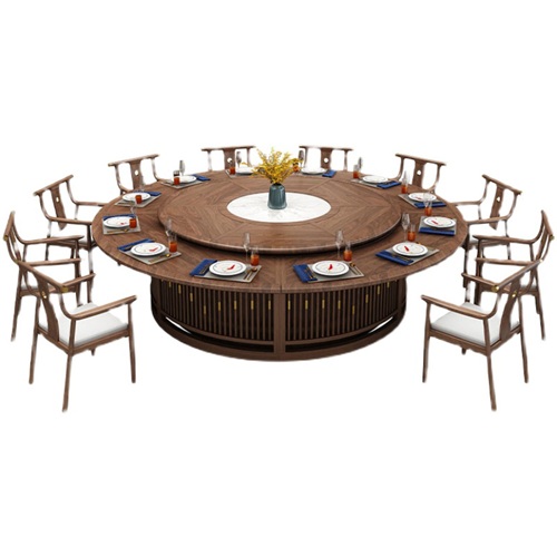酒店包廂新中式實木古典電動轉(zhuǎn)臺餐桌圖