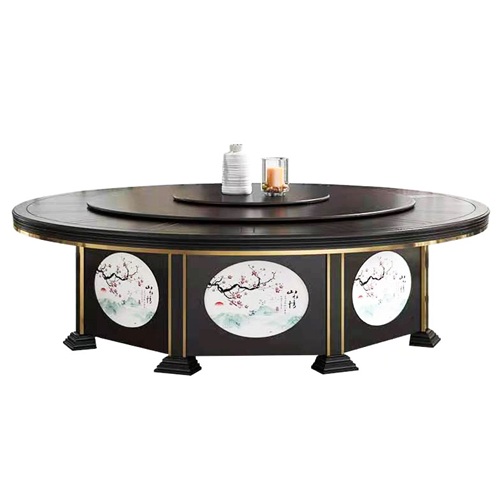 。這款飯店包房新中式實(shí)木智能自動(dòng)旋轉(zhuǎn)餐桌裝飾花紋采用烙燙工藝,擺脫了傳統(tǒng)的木工雕花的費(fèi)時(shí)費(fèi)工,成本居高不下,或者即使是電腦雕花裝飾有感覺(jué)沒(méi)有藝術(shù)感,并且烙燙技術(shù)應(yīng)用到飯店包房新中式實(shí)木智能自動(dòng)旋轉(zhuǎn)餐桌上永遠(yuǎn)不會(huì)掉色,花紋全靠師傅的藝術(shù)審美,每一臺(tái)飯店包房新中式實(shí)木智能自動(dòng)旋轉(zhuǎn)餐桌毫不夸張的說(shuō)都是一件獨(dú)一無(wú)二的藝術(shù)品,值得擁有。