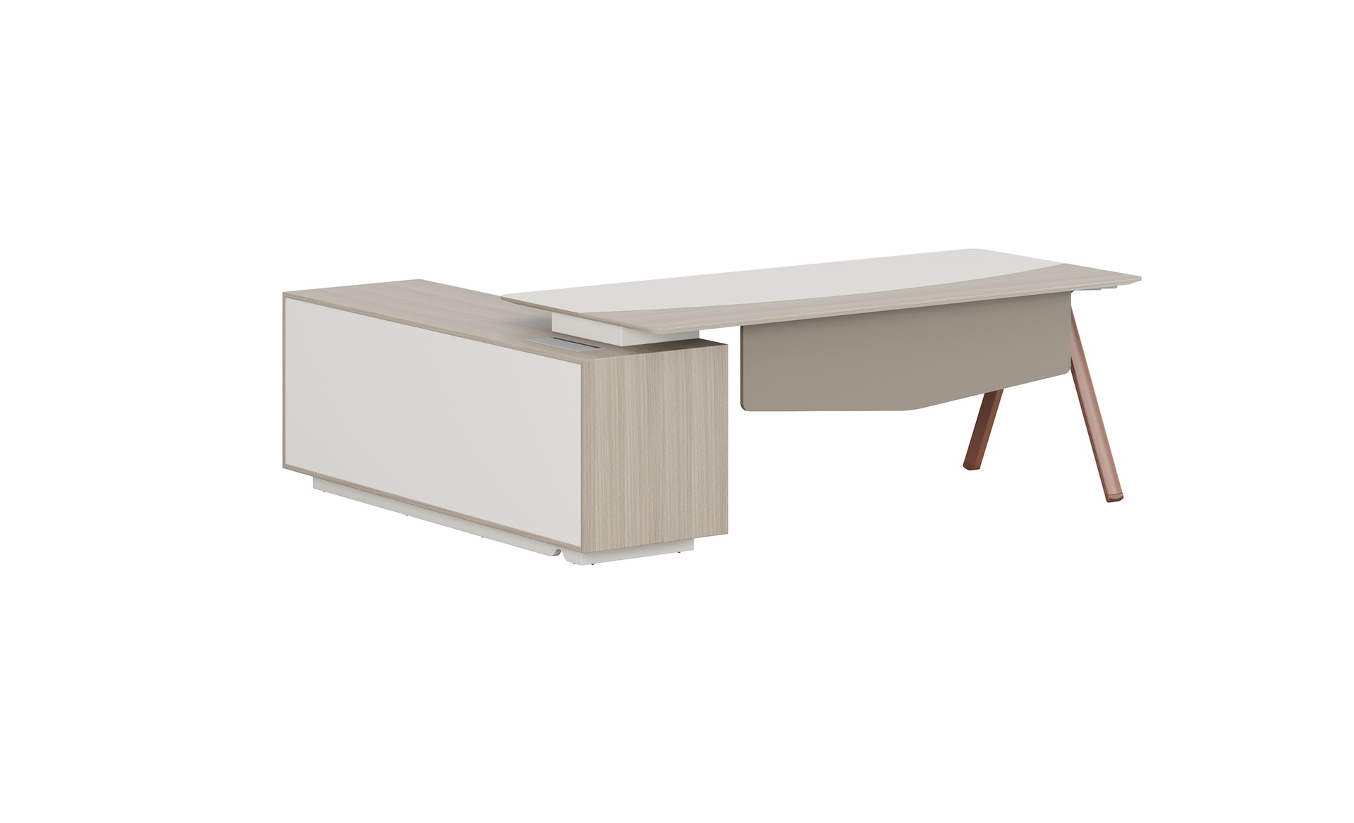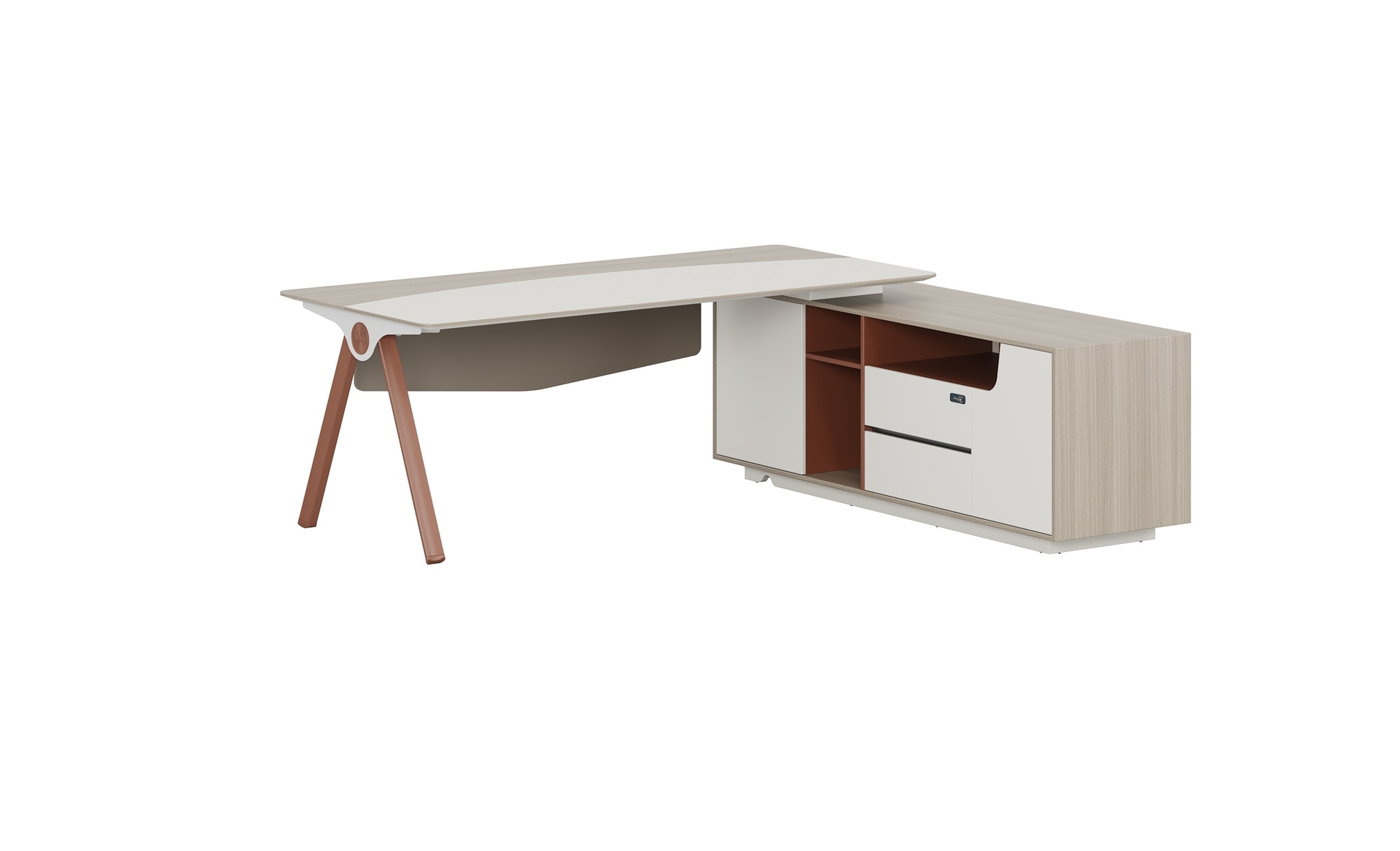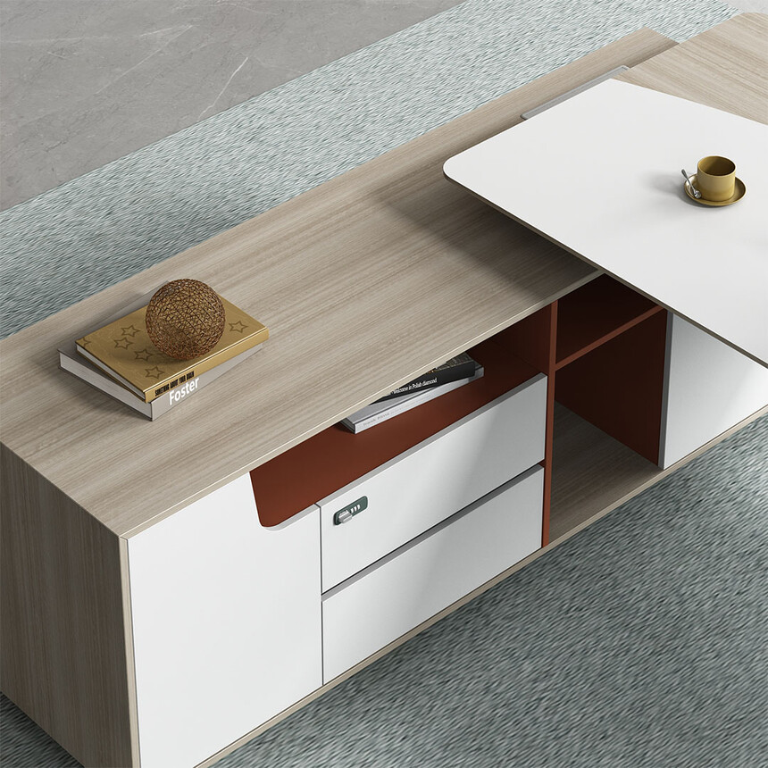 優(yōu)格又名“有格”,代表了有品格、有格調(diào)。產(chǎn)品整體以“青春、時(shí)尚、動(dòng)感”為設(shè)計(jì)主題,采用了大量的弧形與直線(xiàn)條交叉設(shè)計(jì),將產(chǎn)品魅力展示的淋漓盡致。在一貫沉穩(wěn)的深色辦公配色中,大膽運(yùn)用了白色、卡其棕色與淺色木紋的撞色搭配,打破產(chǎn)品配色原有的嚴(yán)肅氛圍,賦予了產(chǎn)品生命力以及活力。獨(dú)特的臺(tái)腳與桌屏設(shè)計(jì),動(dòng)感十足,無(wú)不展示產(chǎn)品的細(xì)節(jié)之美。產(chǎn)品設(shè)計(jì)時(shí)尚,配置齊全,適合各種規(guī)模的辦公場(chǎng)所。