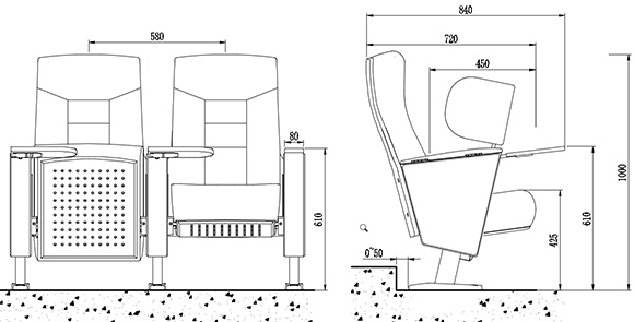 | 座椅深度:840±10mm,扶手高610±10mm:最小排距:900mm。 |