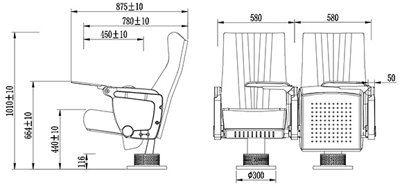 | 主要規(guī)格 | 座寬(扶手中對中):580mm,座椅總高:1000±10mm,座高:445±10mm。 |